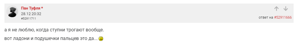 Мнения девушек относительно фут-фетиша разнятся: одним это кажется смешным и нелепым, но большинство с удовольствием приняли бы массаж и поцелуи стоп от своего партнера. Пример с форума https://eva.ru/love/messages-2113712.htm: