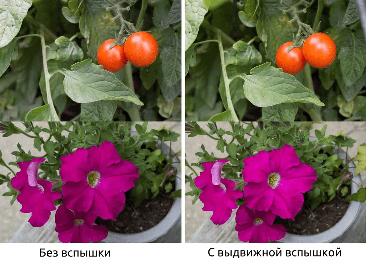 | только естественный свет | заполняющая вспышка | сбалансированная вспышка | сильная вспышка | |