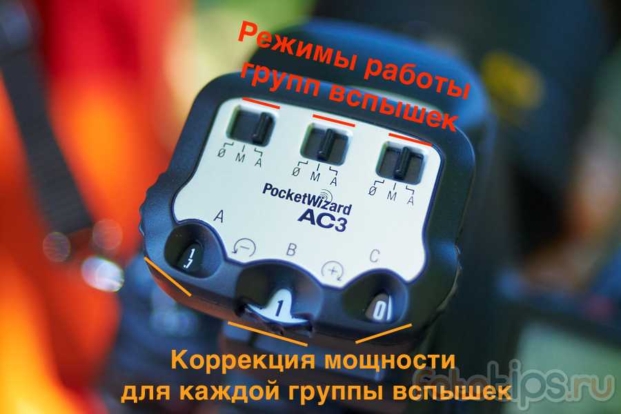 Как мы уже писали выше, AC3 – это небольшое устройство, которое надевается на синхронизатор и позволяет управлять индивидуально всеми группами вспышек.