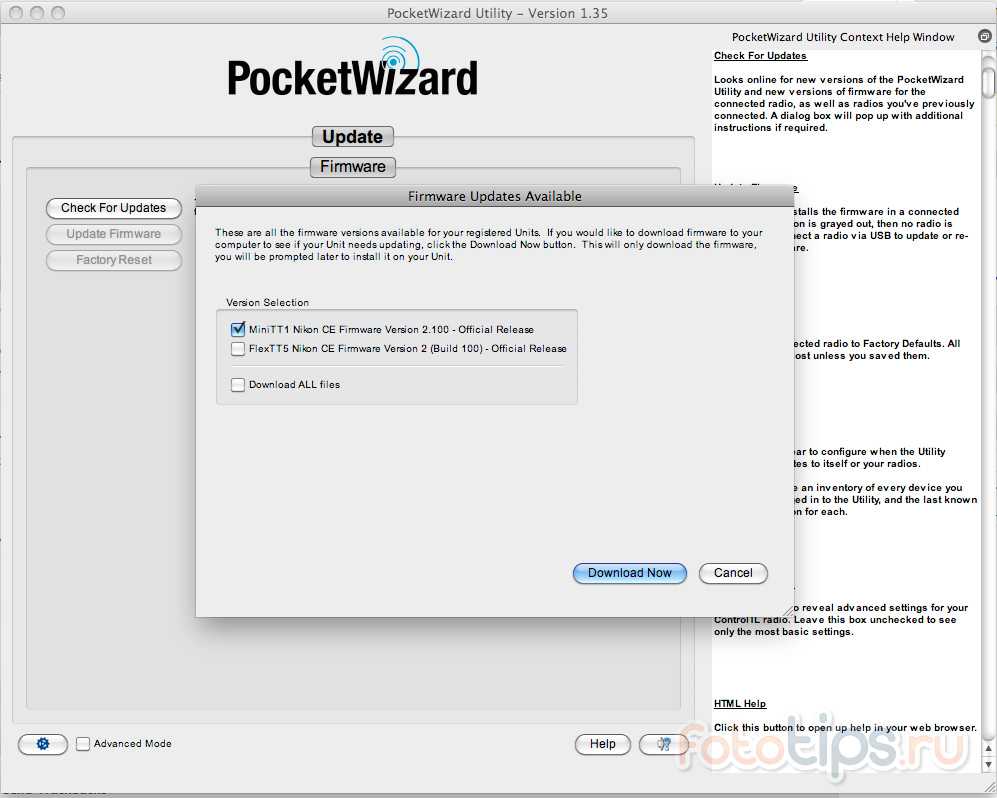 Так же из инструкции вы узнаете, что на PocketWizard можно обновлять прошивку, и перед началом работы этим стоит заняться. Обновление проходит очень просто и не займет много времени.