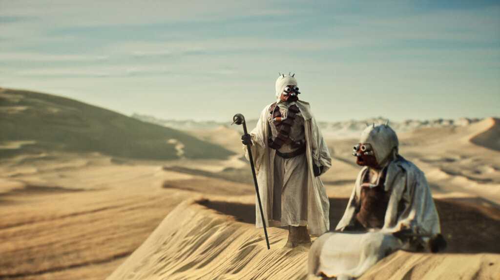Я начал искать героя, и знакомые из мастерской «Кречет», которые создают костюмы и оружие для кино, свели меня с Бекханом Халухаевым. У него есть коллекция костюмов по «Звездным войнам», в том числе для пустынных людей — тускенов с Татуина. В них мы сделали первый тестовый проект People Of The Sand.