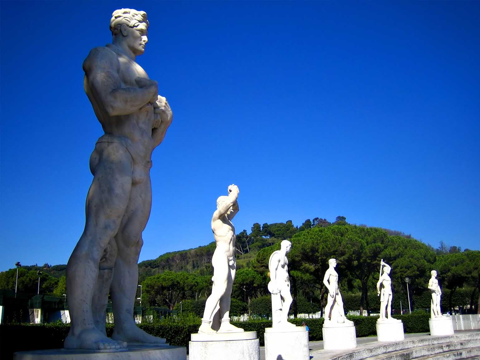 В Италии при Муссолини началась перестройка Рима. С одной стороны, там сохраняли памятники прошлого, с другой — строили новые объекты. Среди них — Итальянский форум (или Форум Муссолини) в Риме, который возводился для подготовки молодёжи фашистской организации. Стадион этого спортивного комплекса выглядит как модернизированный античный комплекс, украшенный полноразмерными скульптурами.