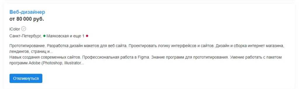 А по данным zarplan.com на март 2022 года, средняя зарплата для веб-дизайнера в России — около 86 тыс. рублей.