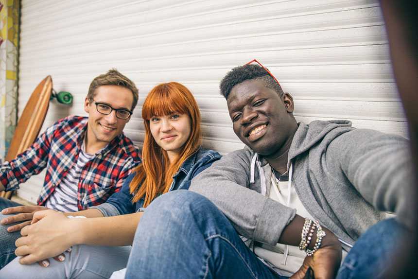 3. Это самый простой и распространенный способ фотографировать друзей. Спокойную и приветливую позу можно воссоздать, попросив друзей встать как можно ближе друг к другу и наклонить головы в сторону друга.