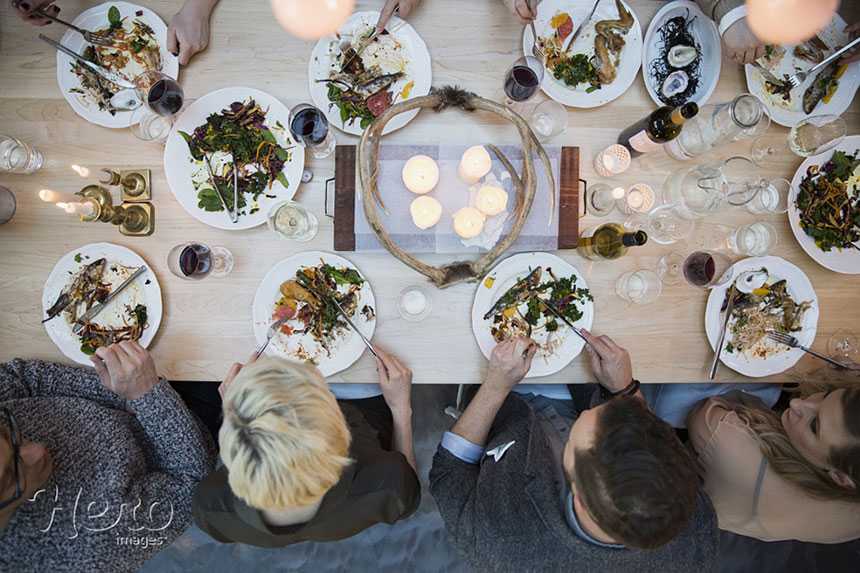 Этот способ самый сложный, но и самый стоящий. Если в доме, в котором вы едите, есть лестничный пролет прямо над столом, то вам крупно повезло, и вы можете расположиться там; если нет … подумайте о стремянке!