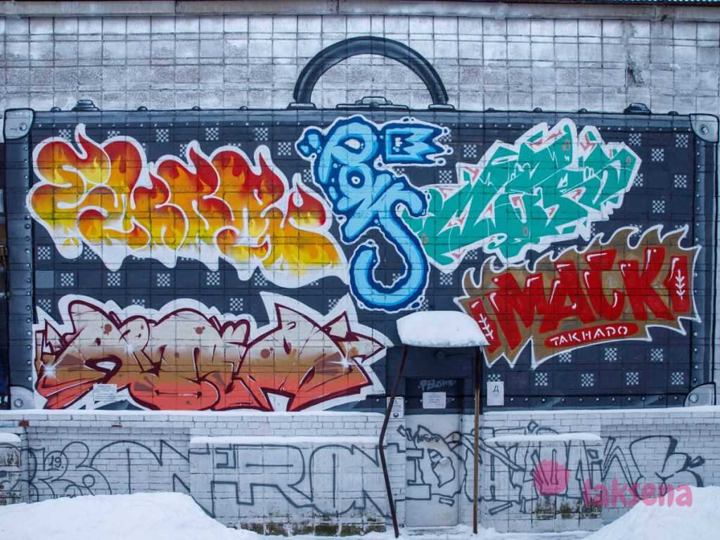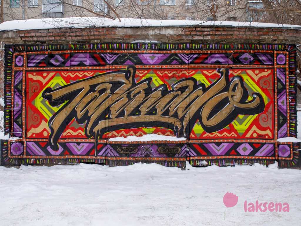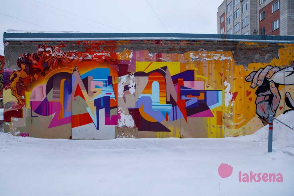 Третью стену художник из команды Такнадо MishaMack в составе команды из 8 художников (каждый нарисовал свой объект в желтом и черном цветах) превратил в яркий арт-объект в стиле хохломы.