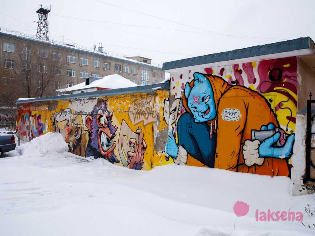 20 сибирских художников превратили пространство на ул. Романова в настоящую галерею в рамках фестиваля стрит-арта Okrasheno в 2019 году. Здесь появились сразу 15 арт-объектов. Цветовая палитра граффити просто поражает! Так что, если глаза и душа запросят ярких красок и эмоций, — бегом сюда.