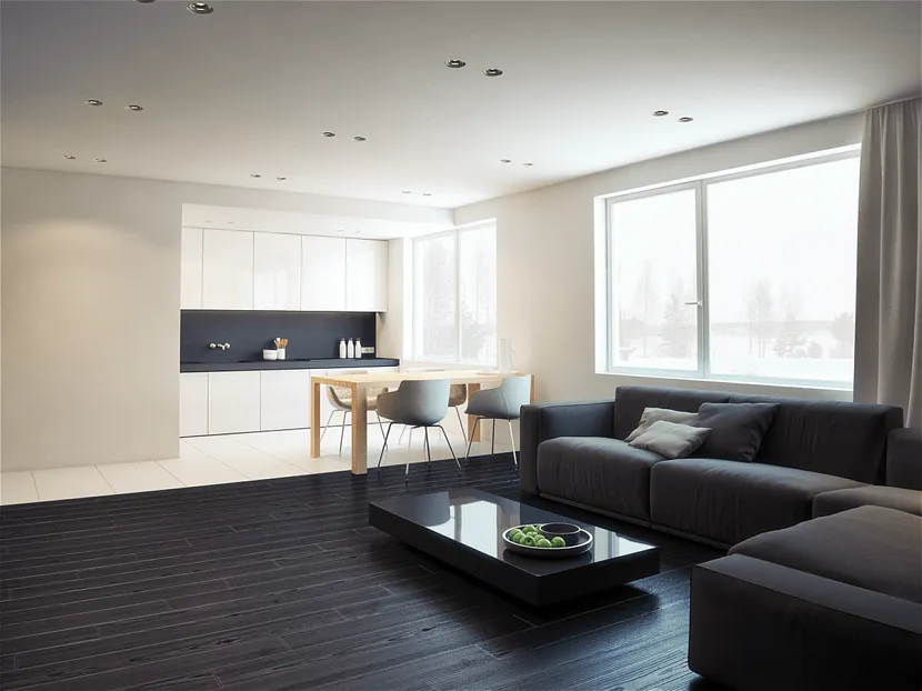Вариант оформления кухни-гостиной в минималистичном стилеИсточник pikabu.ru