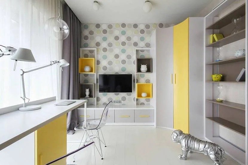 Для оформления подросткового пространства в стиле минимализм отлично подходит выдвижная кровать. Главный плюс этого функционального предмета мебели состоит в том, что ее часть для сна можно выдвигать в ночное время и задвигать в дневное. Для дополнительной экономии пространства лучше всего установить трансформирующуюся мебель. Комната в таком оформлении будет идеальной территорией для активных игр и творческих занятий.