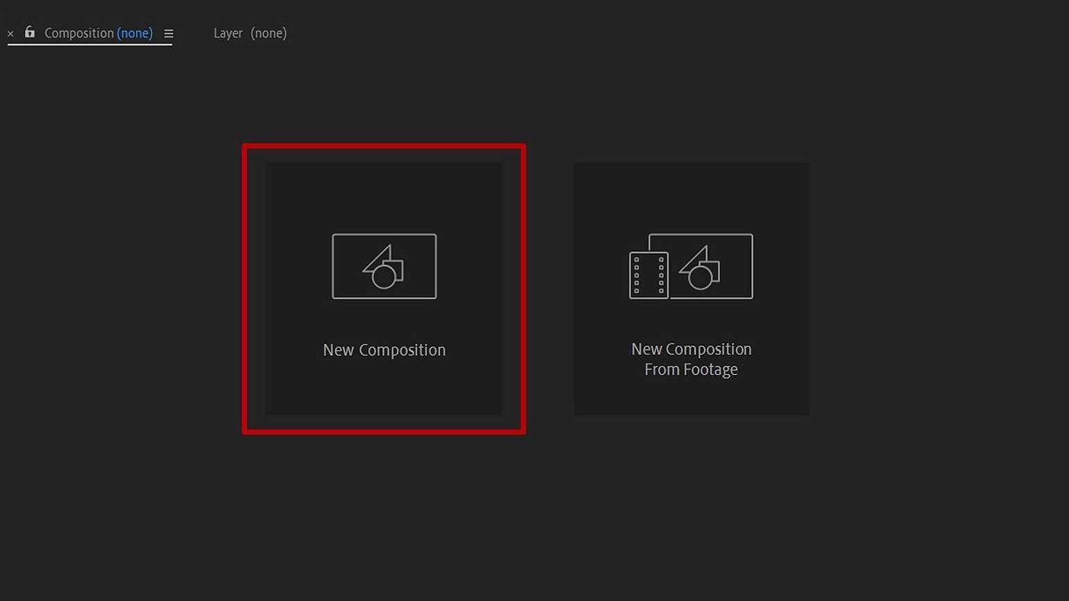 Иконка для создания новой композиции в проекте. Изображение: Skillbox Media