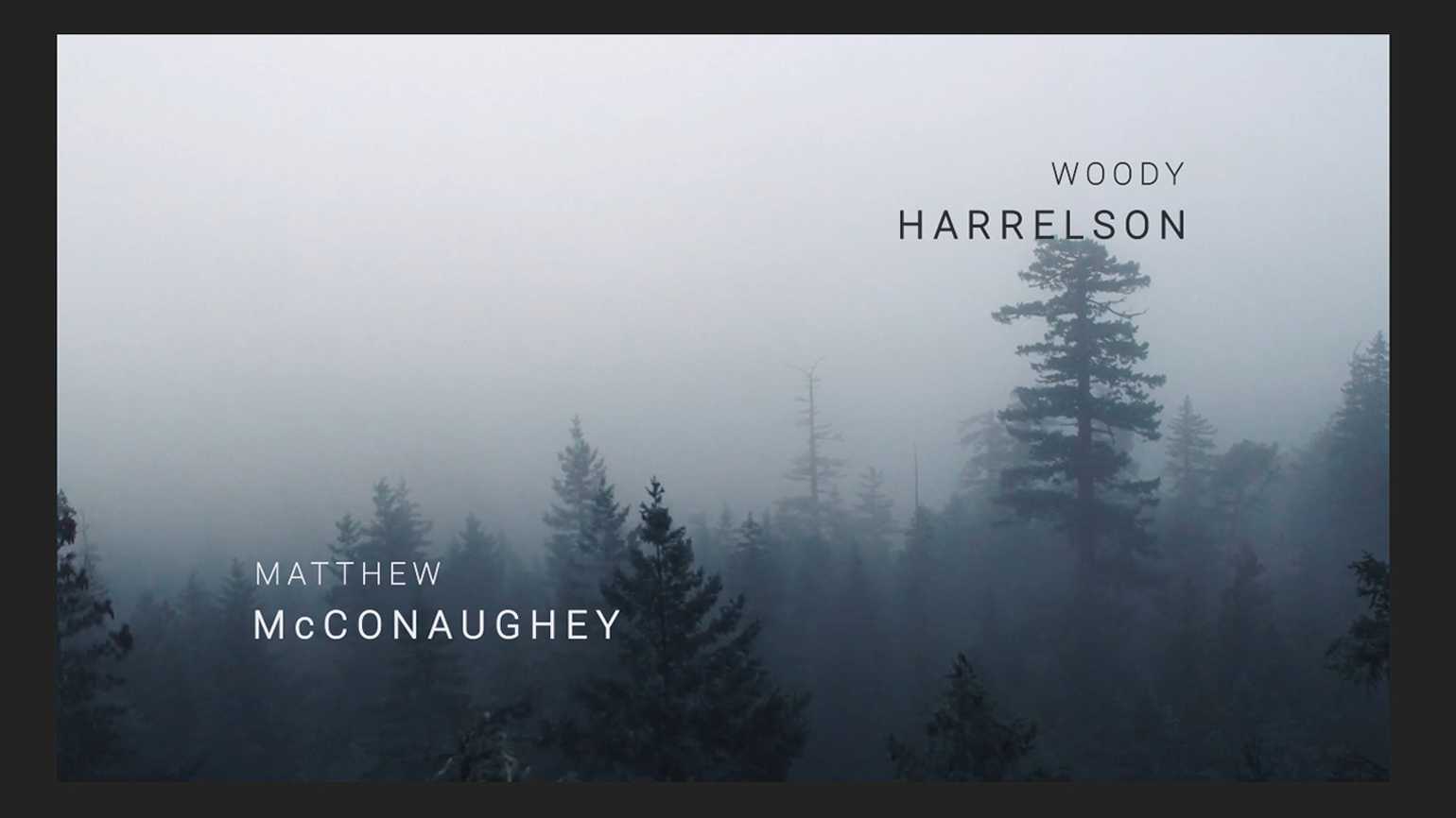 Точно также создайте слои для имени актёра Matthew McConaughey, разместите их в нижнем левом углу, выровняйте по левому краю. Цвет текста ― белый.