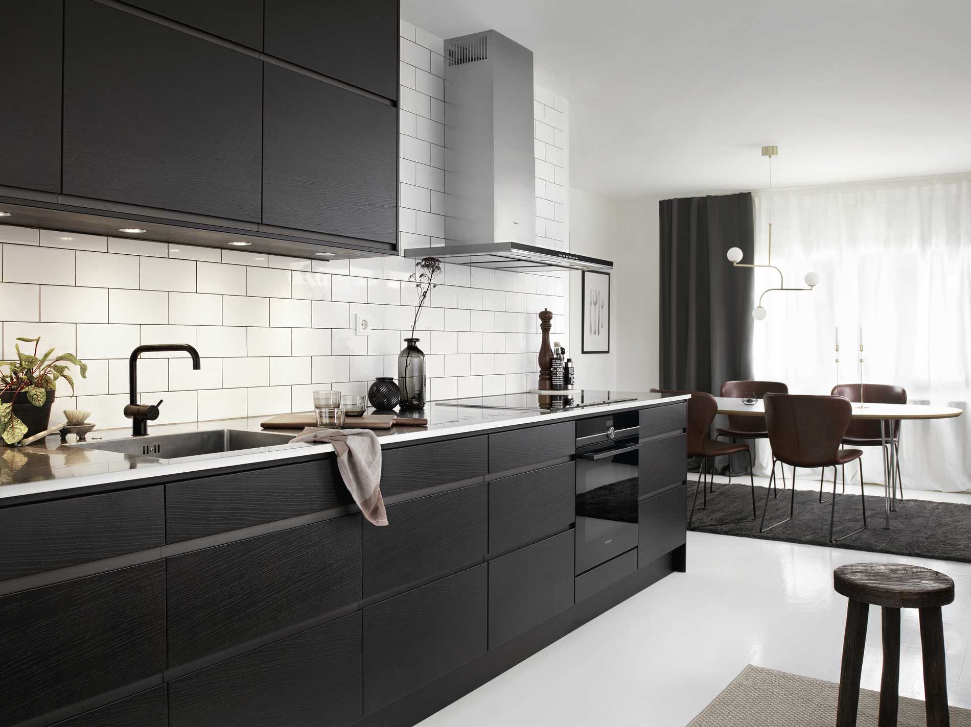 Ручка делает кухню суперсовременной и стильной, что особенно важно, если это минимализм. Фасад остается чистым, потому что при открытии вы беретесь за заднюю часть. Открывать ящики можно как за верхнюю часть, так и за нижнюю