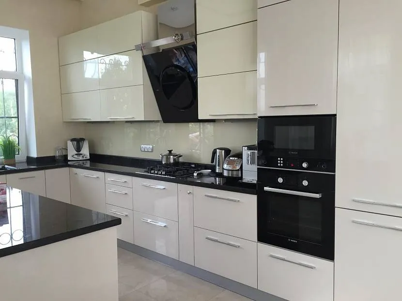 Кухня хай-тек с черной матовой мебелью Источник kryub.in.ua