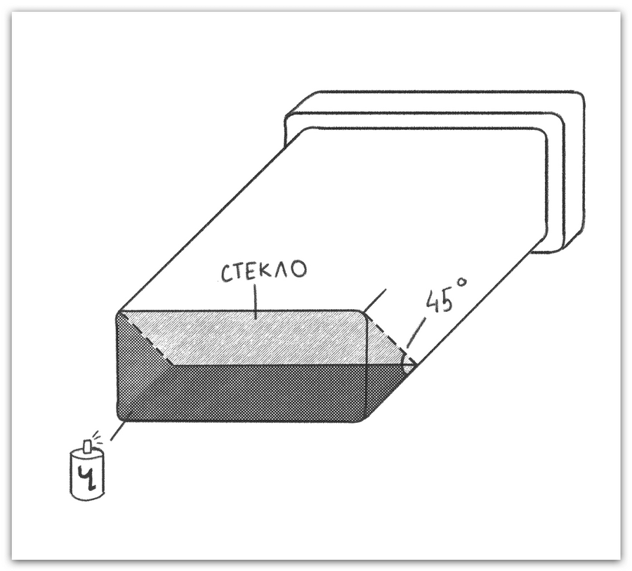 После приступаем к обрезке и вклейке стекла в почти готовый телесуфлёр. Скажу честно: стекло я обрезала на глаз. Но установить его под углом 45 градусов на глаз уже не получится. Если у вас айфон, то измерить наклон можно с помощью встроенного инструмента «Уровень»: для этого откройте приложение «Компас» и свайпните влево. Владельцы устройств на базе Android могут скачать приложение Угломер.