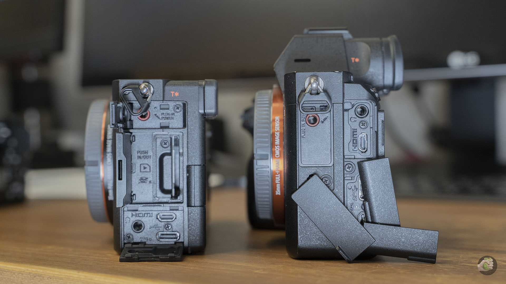 Sony α7C слева и α7 III справа. Организация портов α7C гораздо аккуратнее, чем у α7 III. Фото: Илья Кичаев / Wylsacom Media