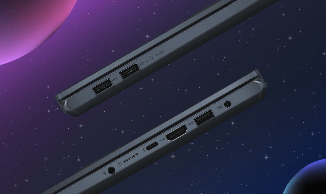 Устройство радует тонким корпусом – 16,9 мм и весит 1,7 кг, то есть, носить его с собой не так тяжело. Производительность в нем обеспечена современным чипсетом AMD Ryzen 5 4600H. Поверхность экрана тут матовая, собственная память 16 Гб, постоянное хранилище – 512 Гб SSD, на корпусе есть три USB-A, USB-C, HDMI. От батареи работает около 12 часов.