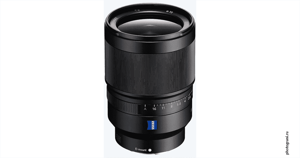 Светосильный объектив для беззеркальных полнокадровых фотоаппаратов совместного производства Sony и Carl Zeiss с фиксированным фокусным расстоянием 35 мм и с максимальной диафрагмой f/1.4.