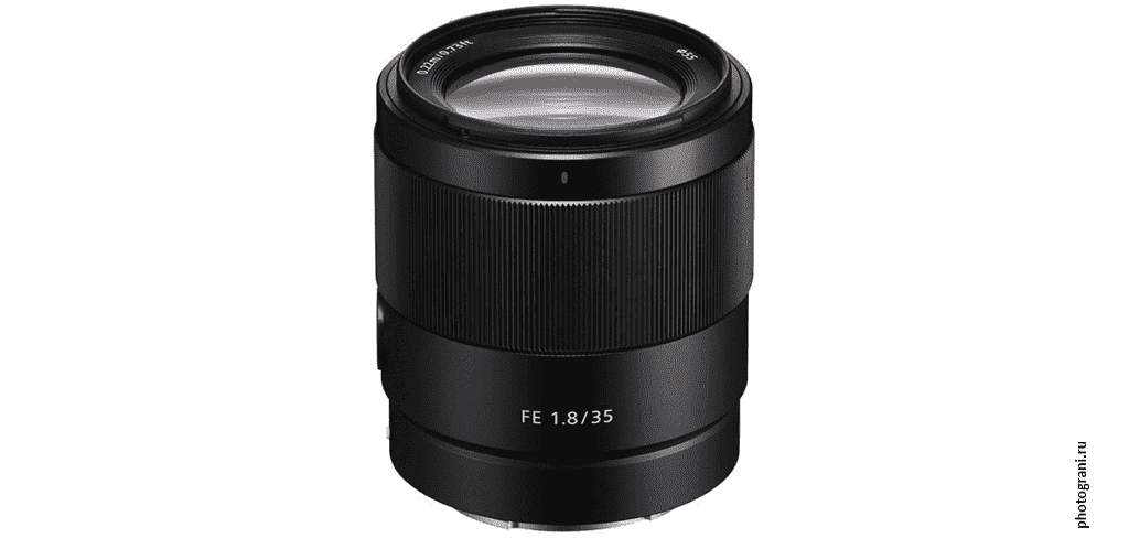 Объектив компании Sony для беззеркальных полнокадровых фотоаппаратов с фиксированным фокусным расстоянием 35 мм и с минимальным диафрагменным числом f/1.8.