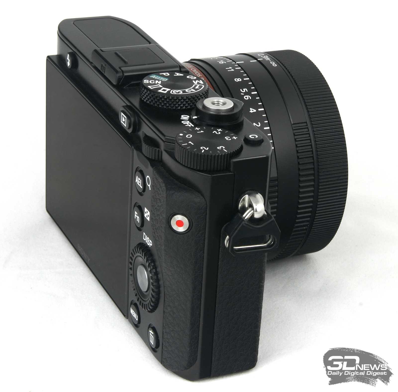 Если не считать внутренних усовершенствований, можно выделить два ключевых новшества: электронный видоискатель и откидной экран. Ну и еще можно выделить пару мелочей. У оригинальной RX1R сзади над экраном был небольшой рычажок для возведения вспышки. А у RX1R II аналогичный элемент, отвечающий за открытие видоискателя, расположен на левом торце.