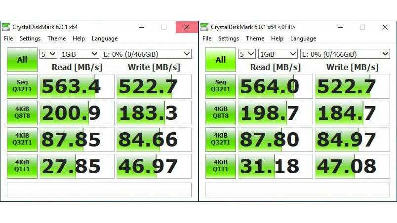 That change proved transformational, with the read speed a blistering 563.4MB/s and writing at 522.7MB/s. That read speed exceeds the quoted speed, if only by a small amount.