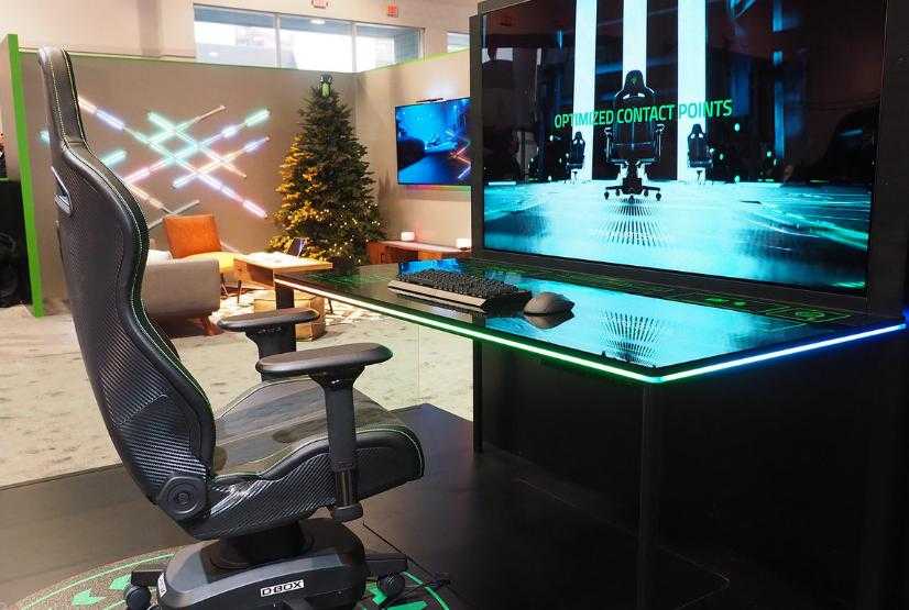 Все компьютерные комплектующие располагаются в отдельном корпусе и крепятся при помощи магнитов к столешнице. За счет чего можно быстро менять процессор, память, SSD или видеокарту. Информация отображается на 65″ или 75″ OLED экране.