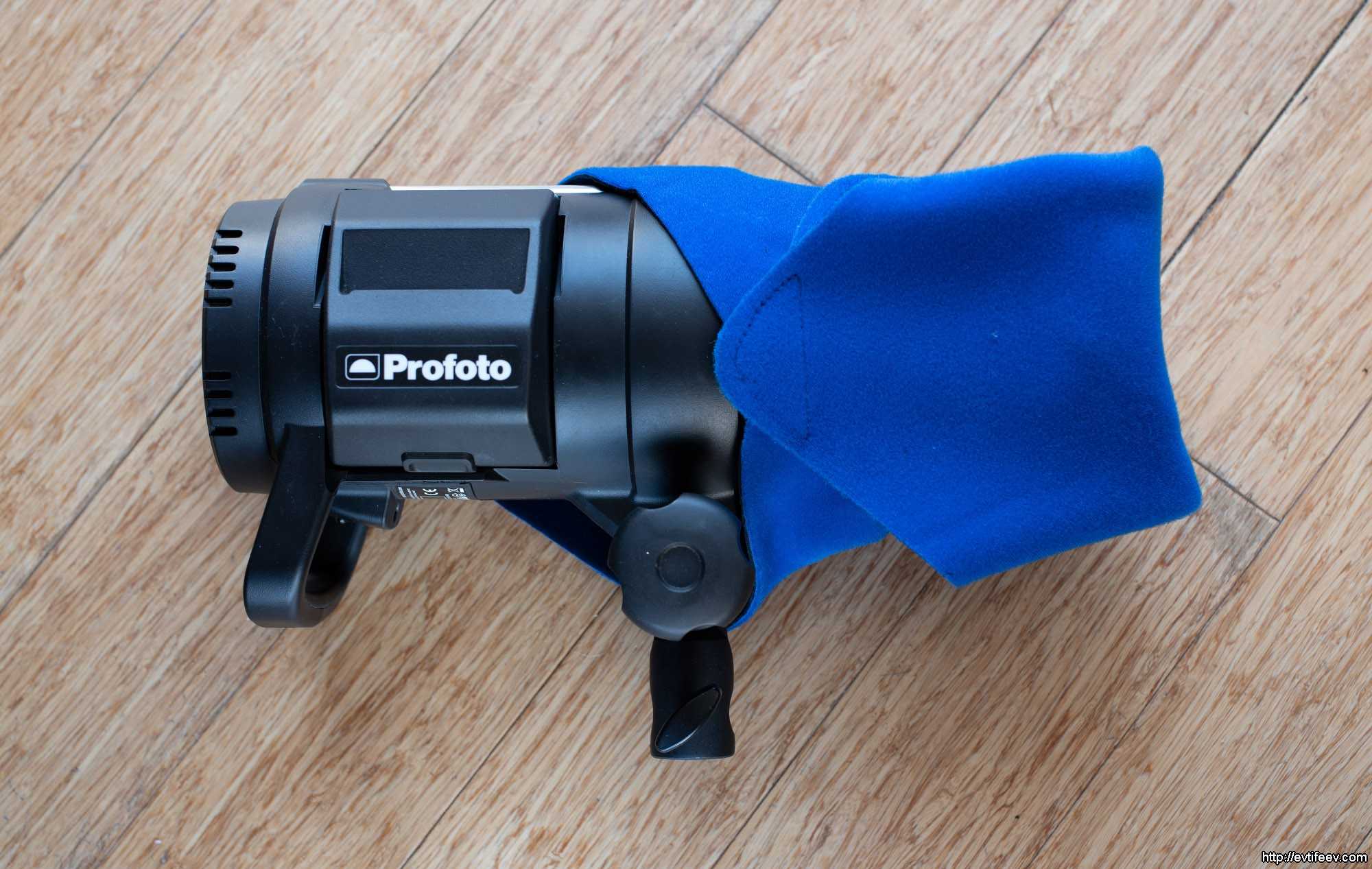 У вспышки Profoto B1 удается защитить переднюю часть где матовое стекло (самую хрупкую).