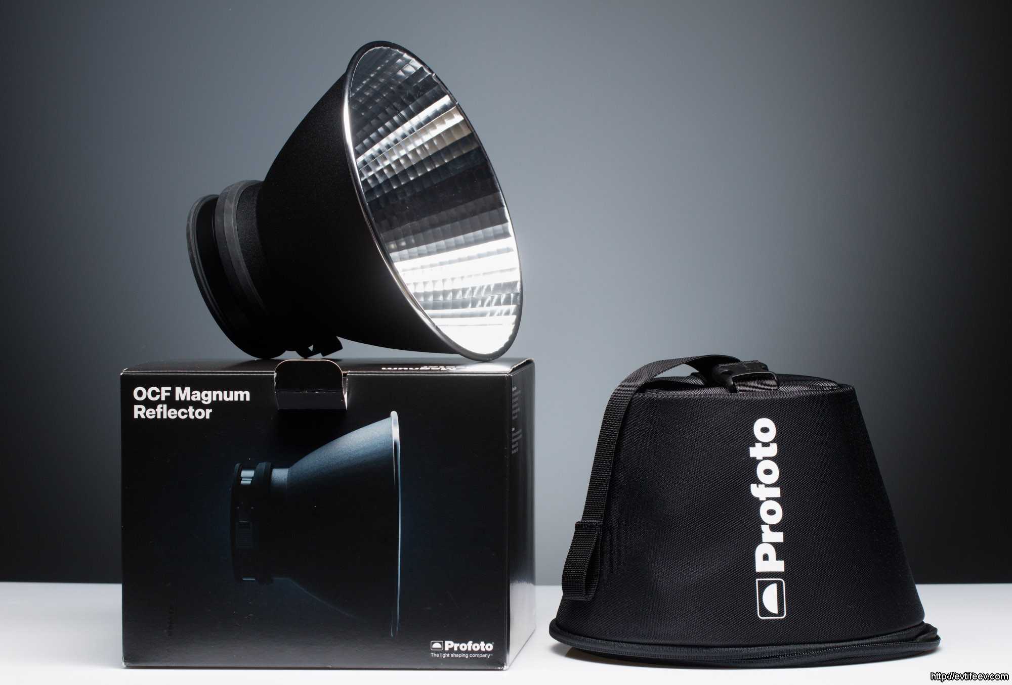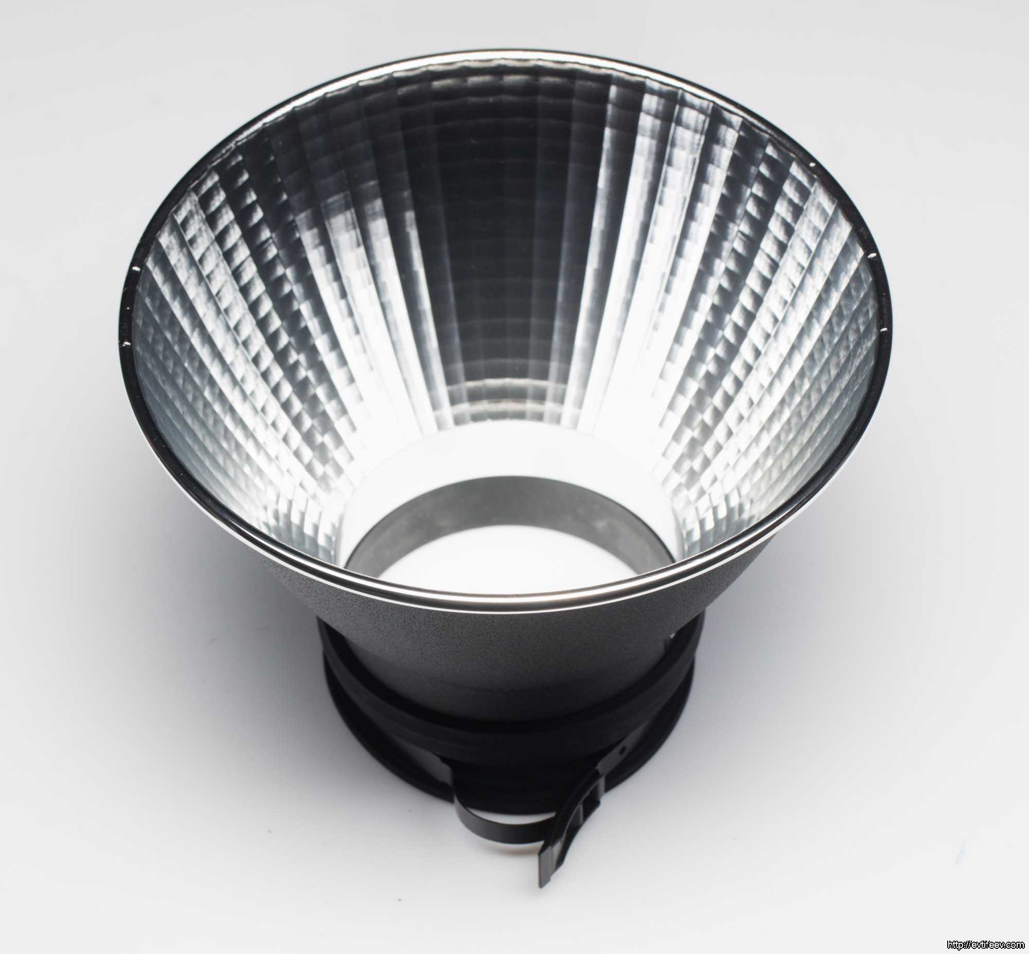 Из той же цитаты компании Profoto, которую я приводил выше: «внутренний рефлектор (при заглубленной лампе) позволяет увеличить световой поток и защищает лампу. Стандартное крепление позволяет выдерживать 2м софтбокс…». Т.е. кроме защиты они еще сделали вывод света более эффективным. Если у выступающей лампы свет идёт назад относительно далеко и только там отражается от рефлектора, а зависит он от проходимого расстояния очень сильно, то здесь всё сделано, чтобы максимально использовать мощность лампы. Причем что лампы-вспышки, что галогенной (это к вопросу о мощности установленного светодиода). Т.е. более мощный светодиод может проиграть более слабому у которого рефлектор установлен ближе. Также важен тип поверхности рефлектора, т.к., например, рефлектор Magnum от Profoto позволяет увеличить световой поток вдвое (!) относительно обычного рефлектора ZOOM. Сам не мог поверить пока не снял показания флешметром.