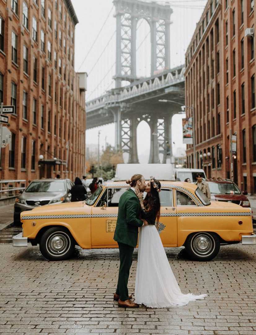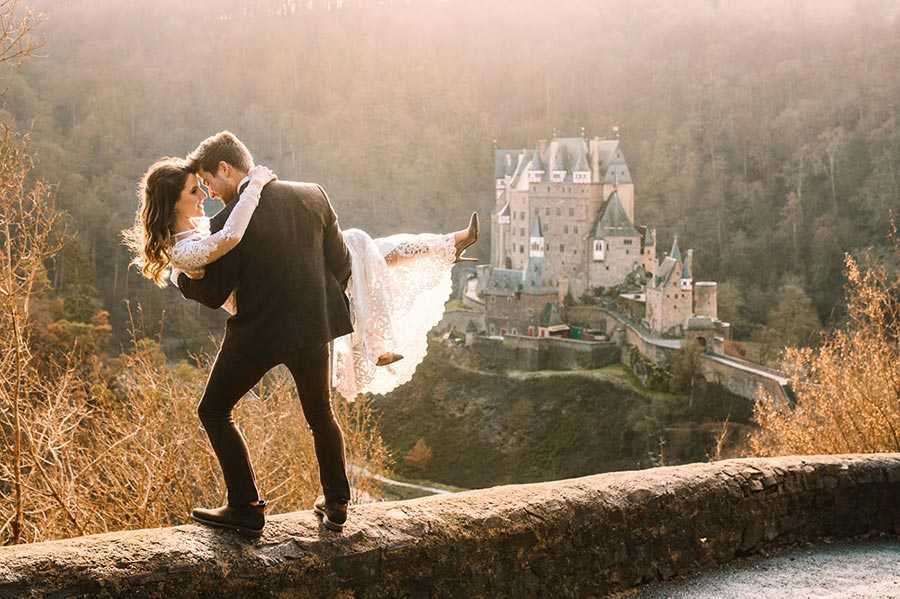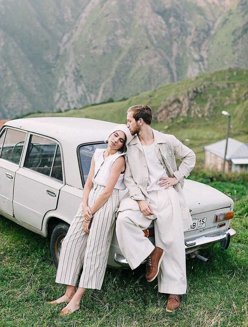 Наконец, в поисках удачных поз для свадебной фотосессии, не брезгуйте «реквизитом», попадающимся на пути: деревьями, валунами, травой, стенами и машинами (в городе):