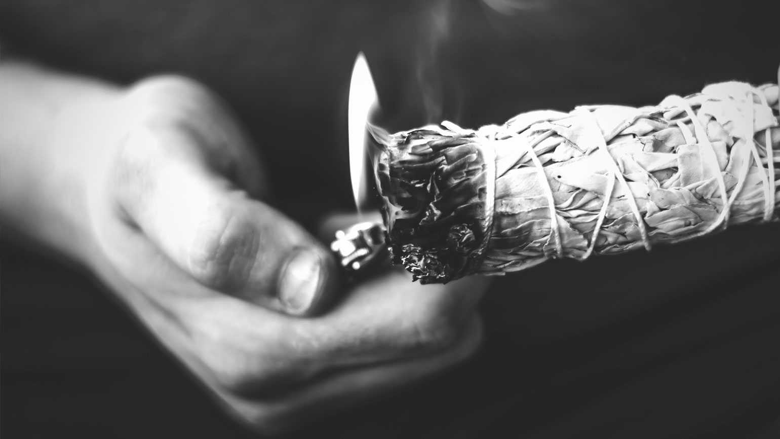 Крупный план может не только показать, чем занят человек, но и рассказать о нём. На этой фотографии человек поджигает связку шалфея — это ритуальное действиеФото: Brittany Colette / Unsplash
