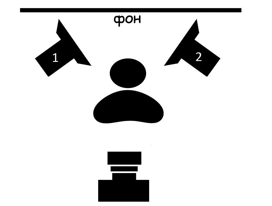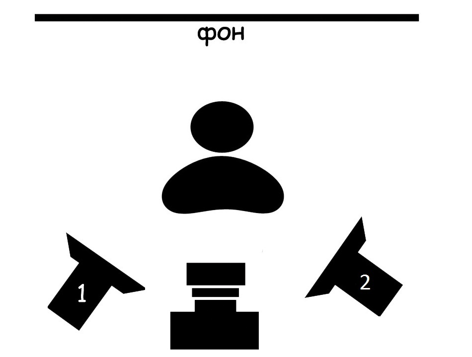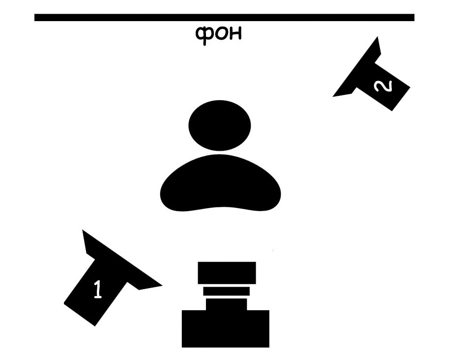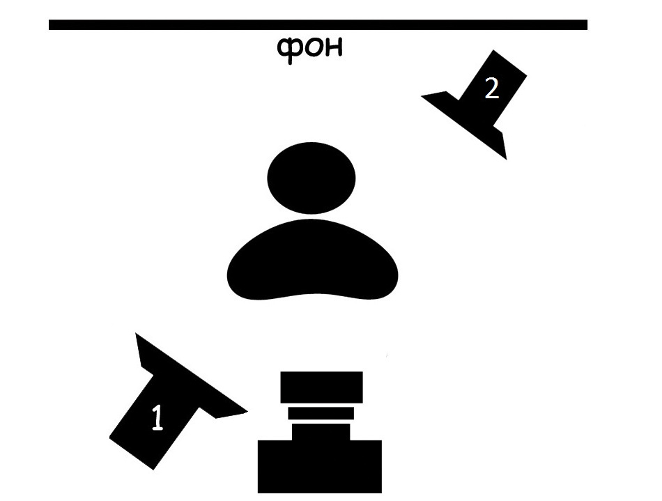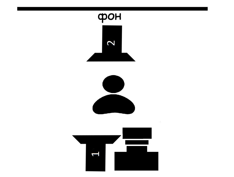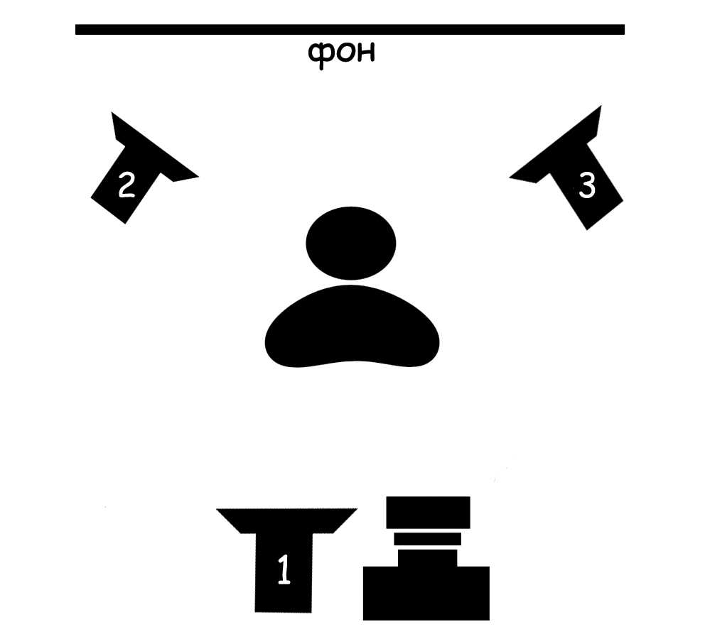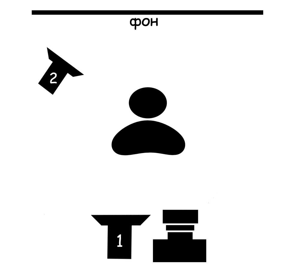 осветительный прибор №2 – осветитель фона, направляется на фон, устанавливается за снимаемым объектом, так, чтобы осветитель не попадал в кадр.