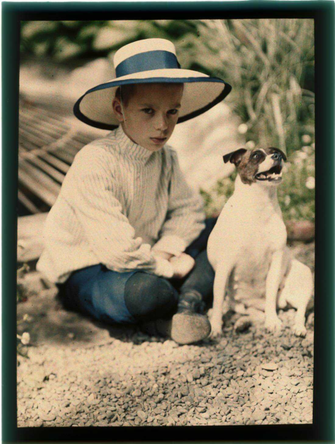 Пётр Веденисов. Коля Козаков и собака Джипси. Ялта 1910−1911. Автохром. Собрание Мультимедиа Арт Музея, Москва