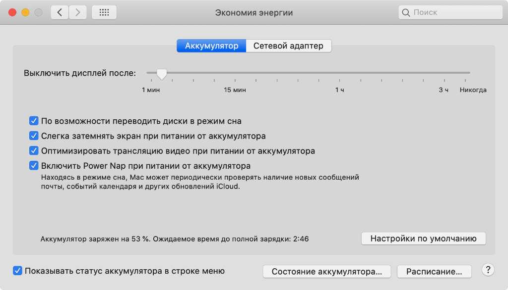 - вернитесь в «Системные настройки» и перейдите в раздел «Экономия энергии» — здесь можно настроить выключение экрана.