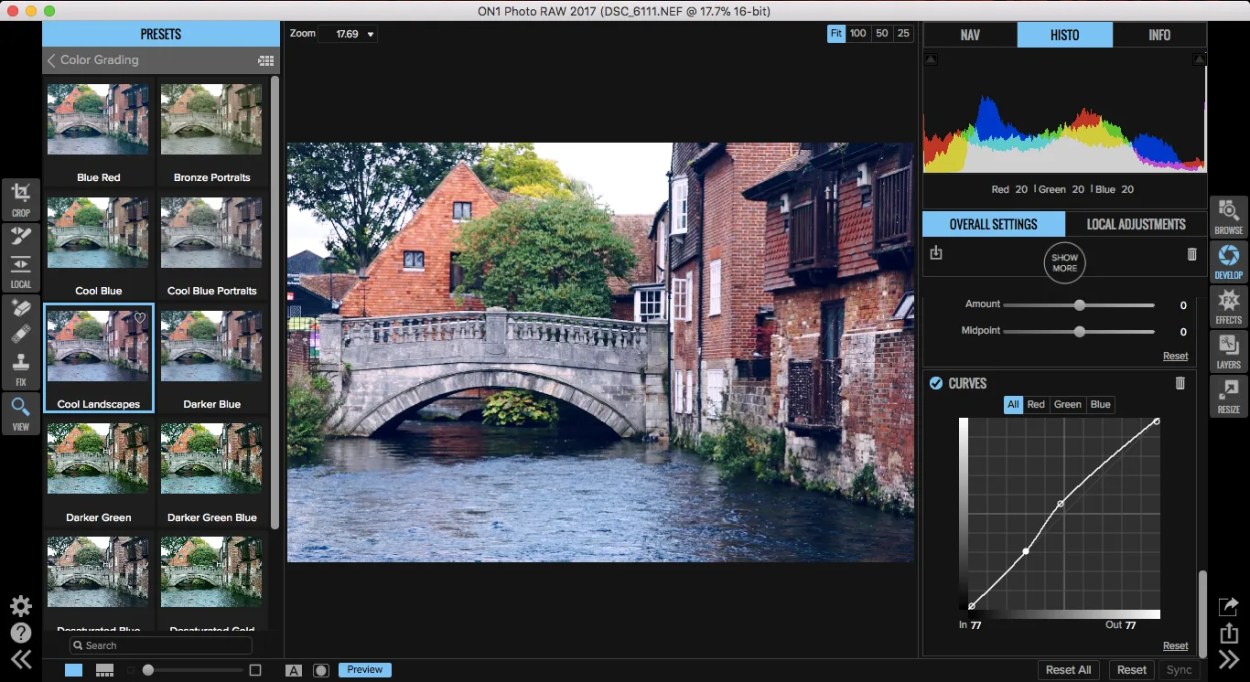 Этот продукт на рынке может считаться новичком. ON1 Photo RAW взял себе все самое лучшее, что есть в Lightroom: возможность сортировки фотографий и их организацию, быструю обработку RAW, а также некоторые функции Photoshop, например, работу со слоями. Благодаря такому набору приложение может комбинировать изображения, чем другие альтернативы Lightroom похвастать не могут.