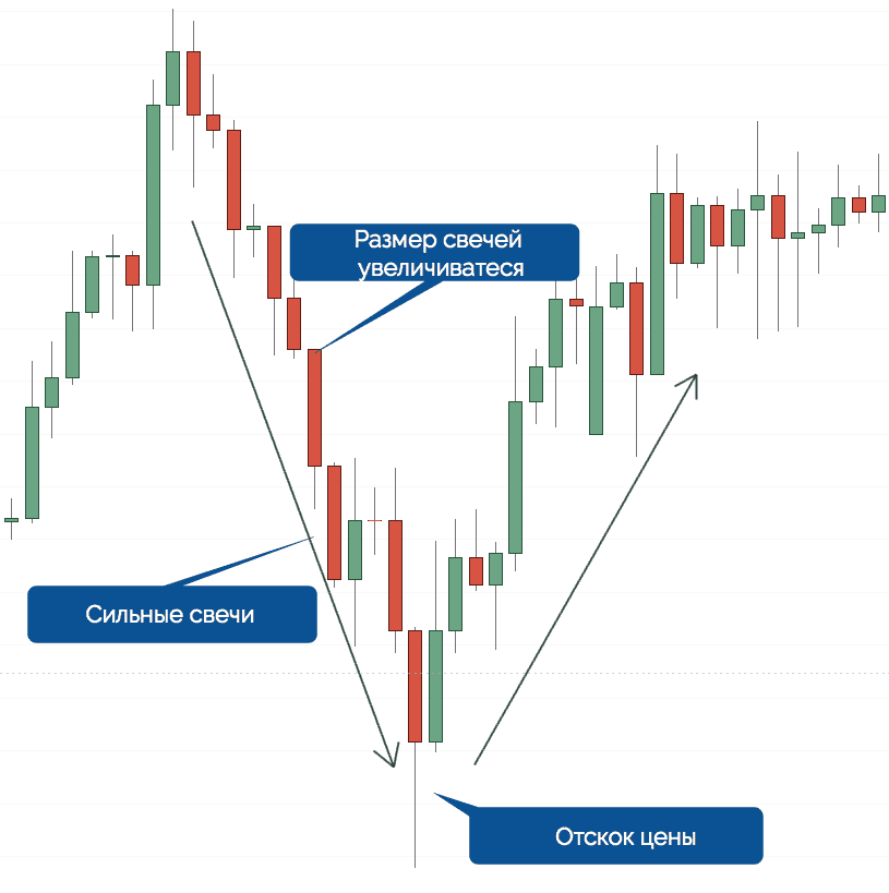 - Затем внезапно мы видим сильную медвежью свечу, которая подтверждает новый нисходящий тренд.