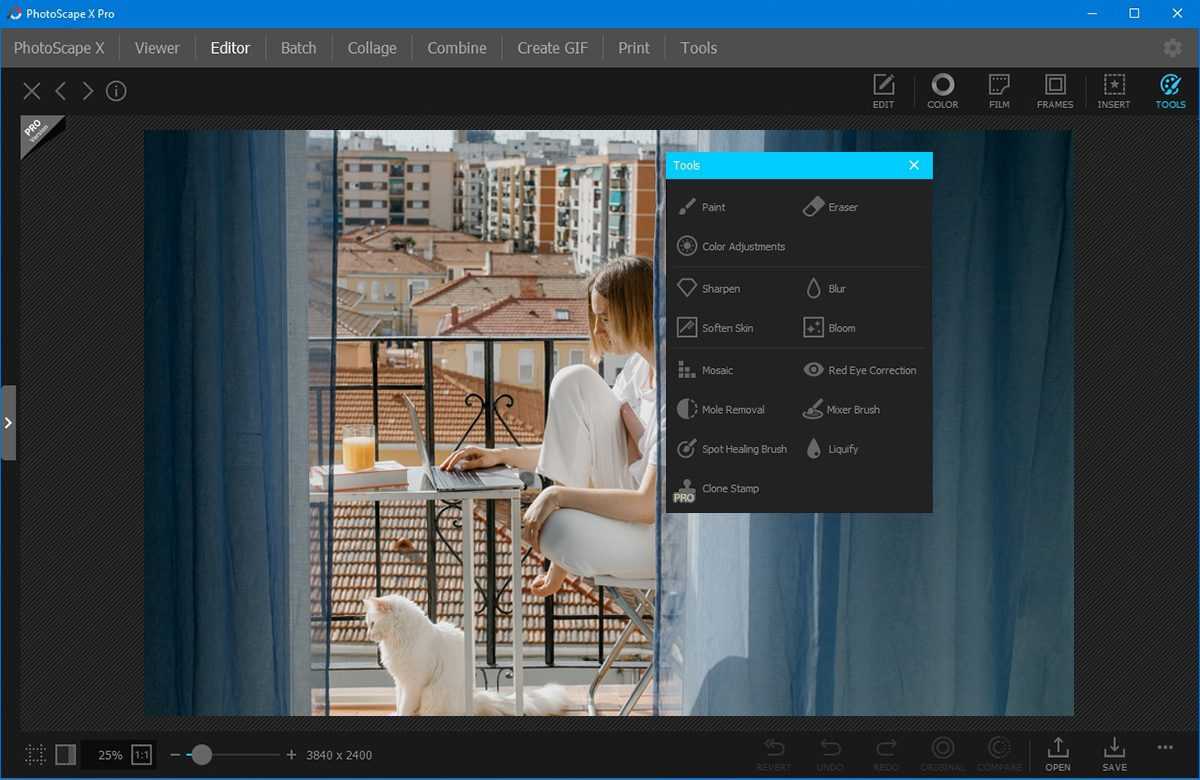 Попал в ТОП фоторедакторов на ПК за умение корректировать снимки, трансформировать кадр, работать со слоями и текстом. Фотографии в PhotoScape X можно обрабатывать пакетом — конвертировать в другой формат, менять размер и название у десятков изображений одновременно. Цветокоррекция есть ручная и автоматическая, т.е. через фильтры.