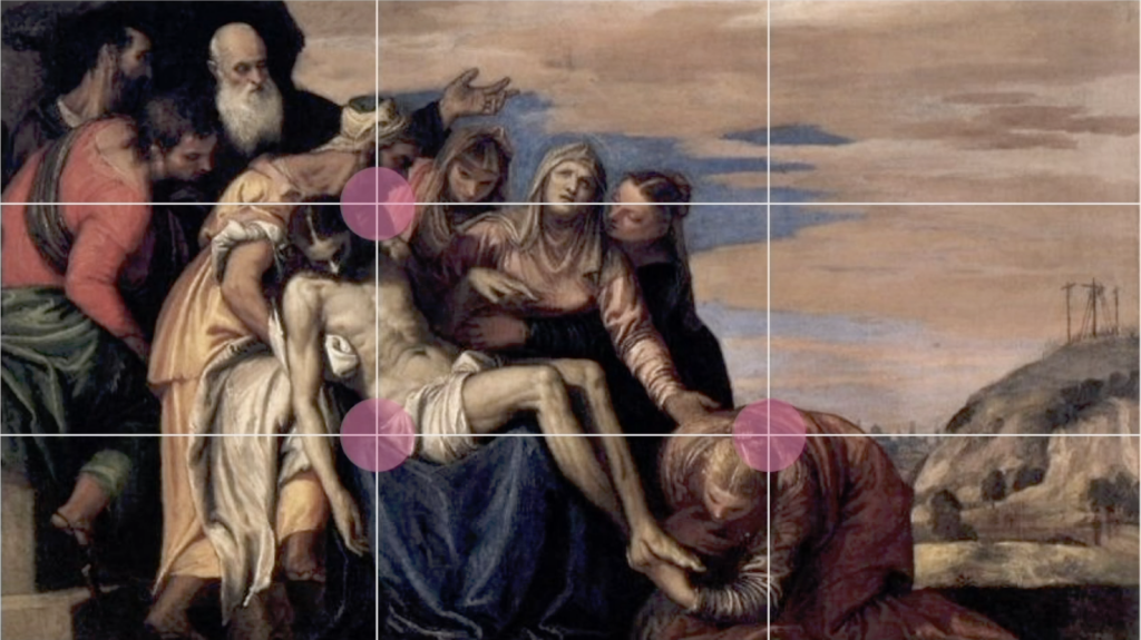 Человеческий глаз естественным образом останавливается в этих точках, а возникающая асимметрия — ни одна из точек не совпадает с центром, ведь композиция разделена на трети — создаёт достаточное напряжение, чтобы придать работе динамики.