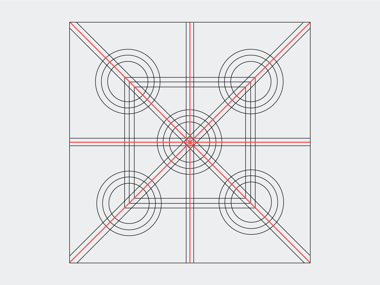 Структурная решётка Рудольфа Арнхейма: круги и линии показывают области внимания и движение взглядаИзображение: Polina Vari для Skillbox Media