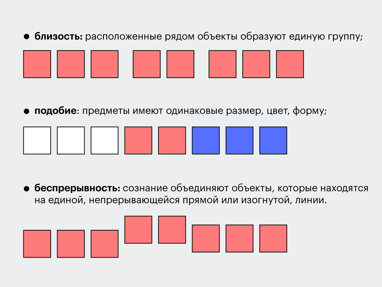 Принципы восприятия Макса Вертгеймера и Курта КоффкиИзображение: Polina Vari для Skillbox Media