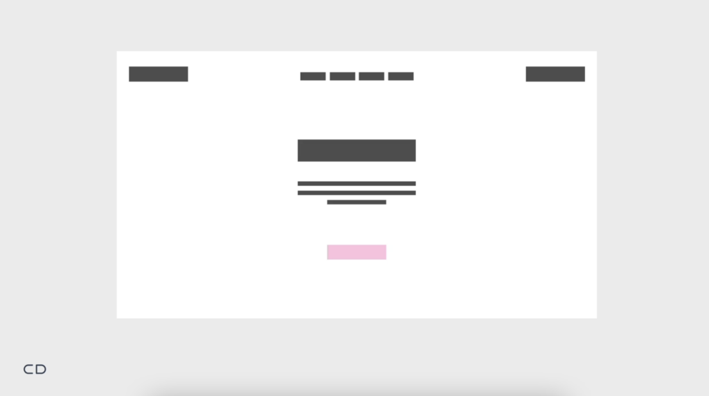 Это точка притяжения внимания в дизайне, на которую дизайнер хочет обратить внимание пользователя. Например, на схематичном первом экране лендинга четко выделяется розовый элемент — кнопка