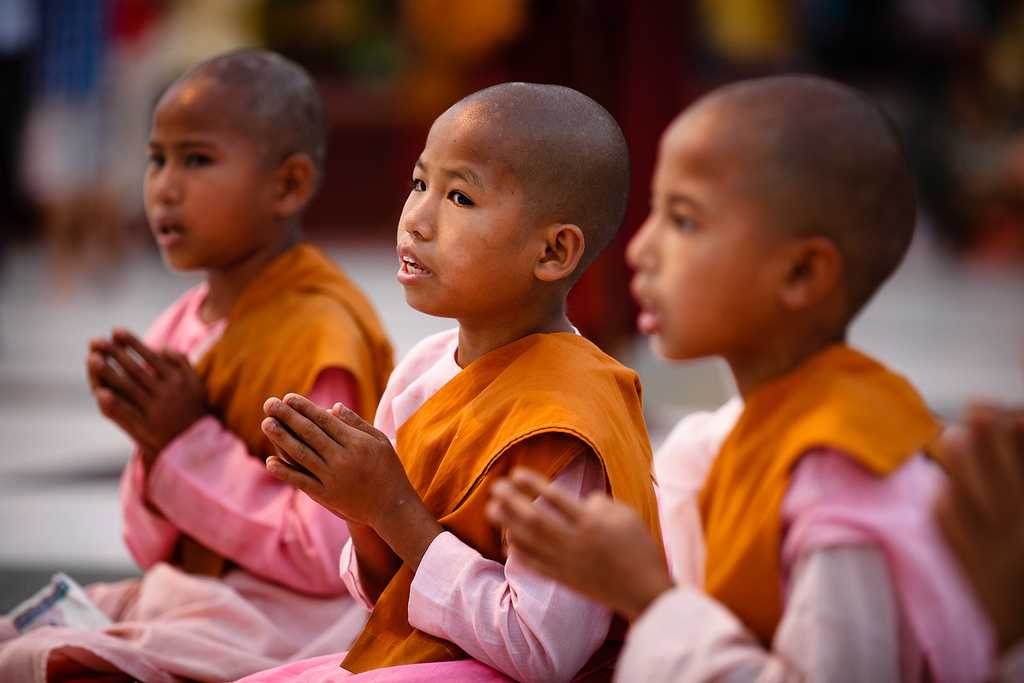 Фотографию ниже можно было бы сделать чёрно-белой, но тогда она не смогла бы передать зрителю то, что хотел показать автор. Розовое одеяние этих монахов в Мьянме — единственное в своём роде во всём буддийском мире. В этом случае цвет содержит полезную культурную информацию, необходимую для раскрытия образа или истории, рассказываемой фотографией. Именно поэтому её следует оставить «как есть» то есть в цвете. Переведя эту фотографию в чёрно-белый цвет, мы потеряем существенную часть информации, содержащейся в изображении, и получим лишь кадр с тремя маленькими буддийскими послушниками.