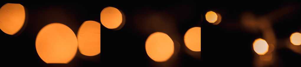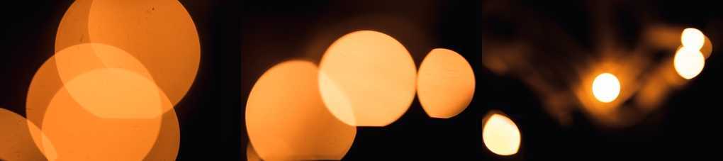 Диафрагма тоже играет важную роль в отображении боке. Например, если мы будем снимать уже знакомую нам гирлянду, прижатую вплотную к 35mm объективу и менять лишь значение диафрагмы, то увидим, что эффект боке будет терять насыщенность с увеличением значения диафрагмы. На примере ниже мы видим съемку одной и той же гирлянды снятой вплотную к 35mm объективу при значениях f/1.4, f/2.8, f/5.6