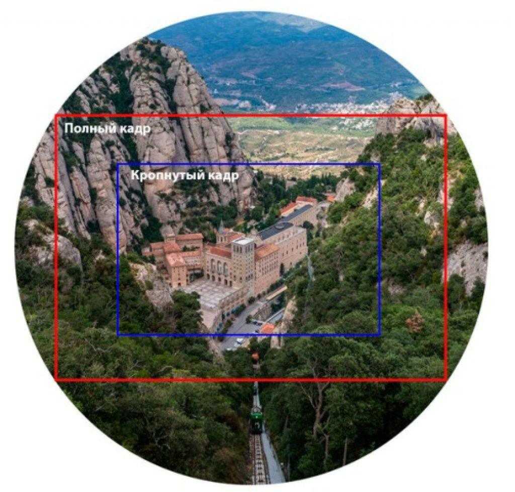 Если сменная оптика кроп-камер применяется на полноформатных и наоборот, то нужно знать, что объектив для полнокадровой камеры вполне можно использовать на камере с кроп-матрицей. Правда, на матрице будет отображаться только центральная часть кадра, остальное уйдёт за пределы матрицы и не будет участвовать в построении изображения.