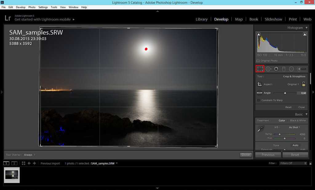 Рекомендованное специалистами съемки, не всегда удается поймать навскидку во время фотоохоты. Животные или дети чаще всего не ждут, пока фотомастер наведет на них объектив, да и пейзажи имеют склонность заваливаться набок в видоискателе, а нежелательные граждане лезут в кадр со странными жестами и мимикой. Отсечь все лишнее помогает функция кадрирования в Лайтрум, вызываемая кнопкой R.