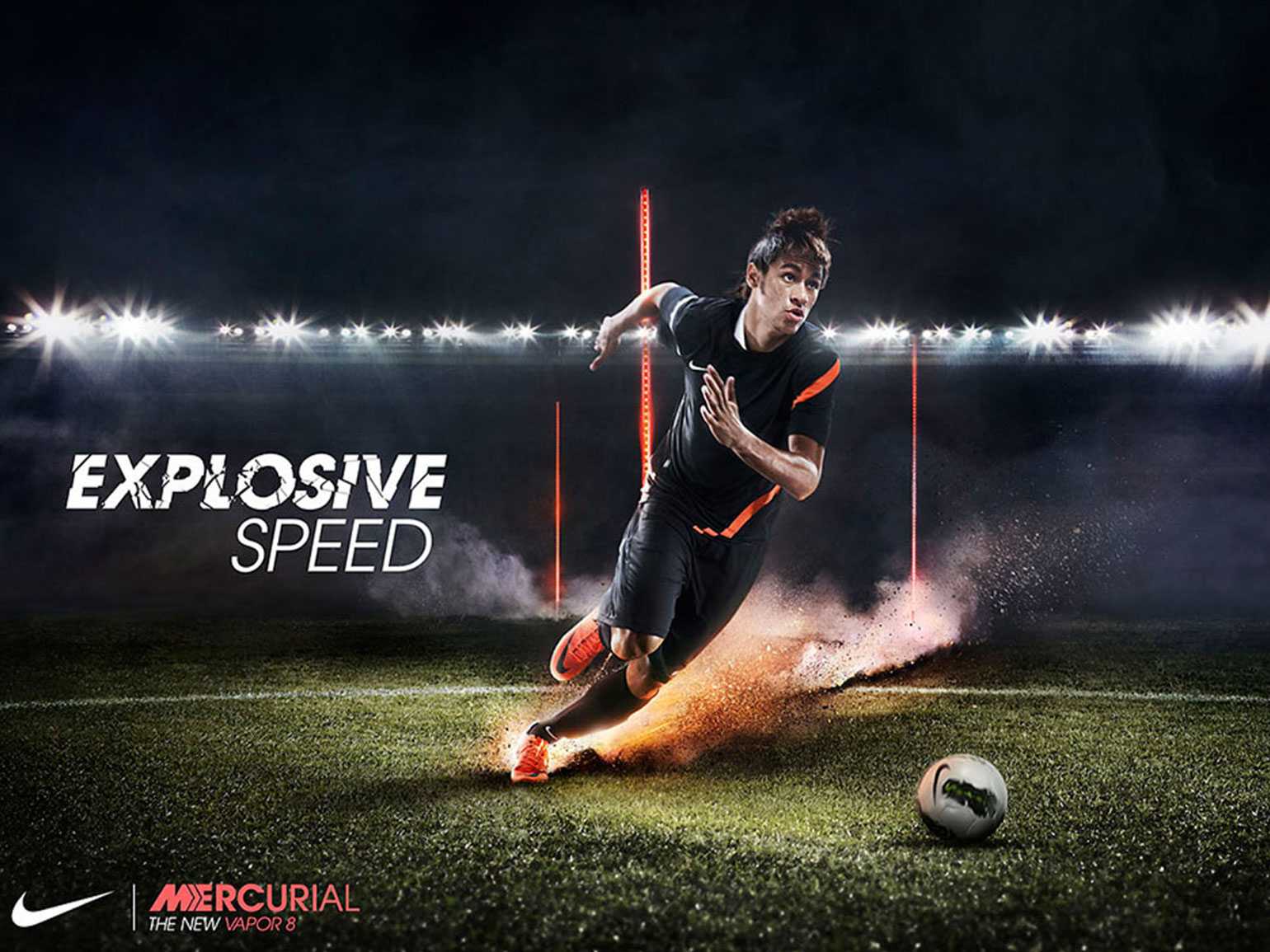 Рекламный плакат Nike. Руки спортсмена и мяч находятся на диагонали из левого верхнего в правый нижний угол, а сама фигура соответствует второй диагоналиИзображение: Nike