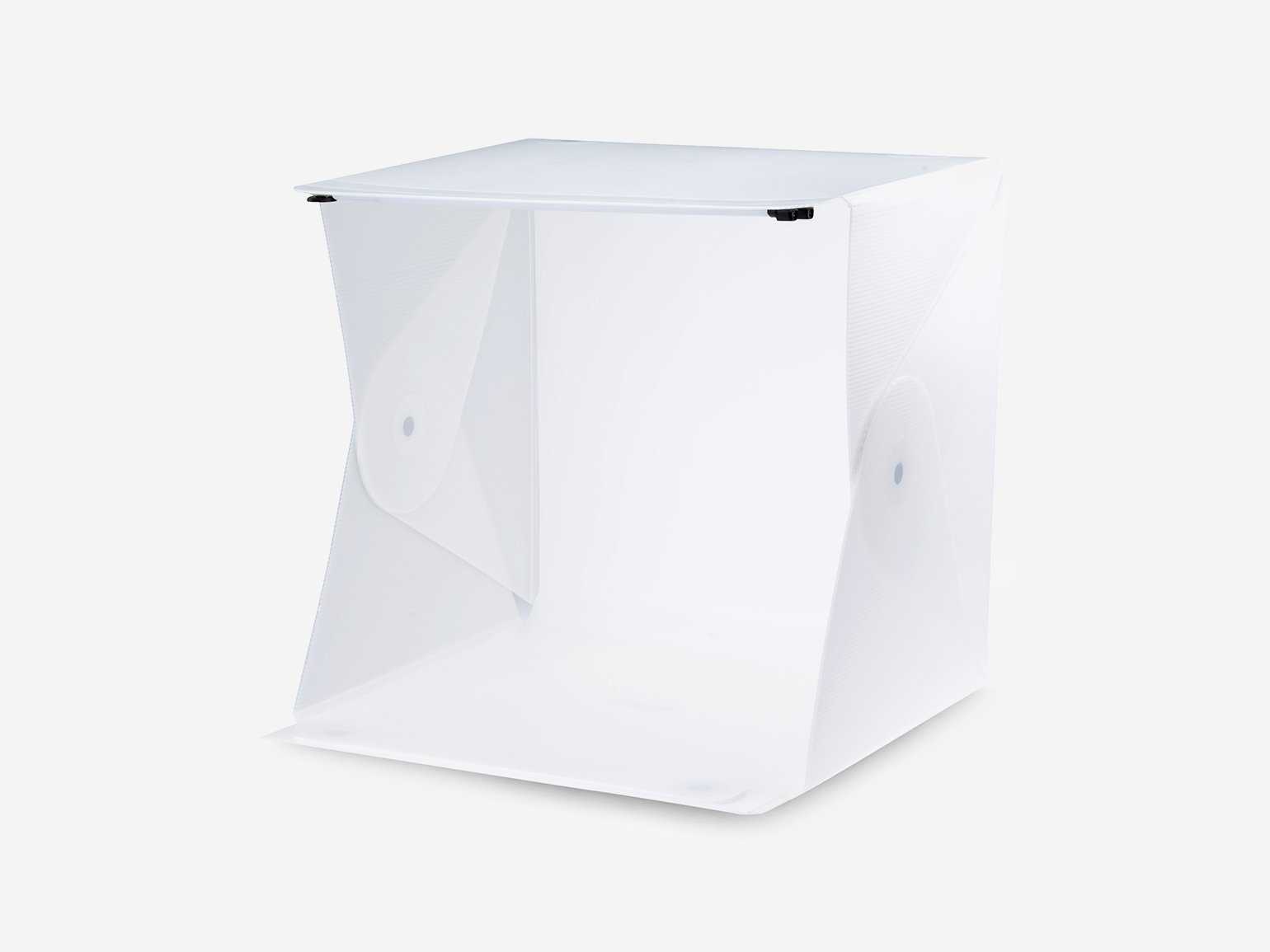 Он заменит белый предметный стол и рассеивающую насадку (лайтбокс) одновременно. Достоинства фотобокса: очень лёгкий, компактный — складывается втрое и убирается в чехол, а также недорогой — стоит около 2 тысяч рублей. Траты на его покупку невелики, а преимущества — огромны.