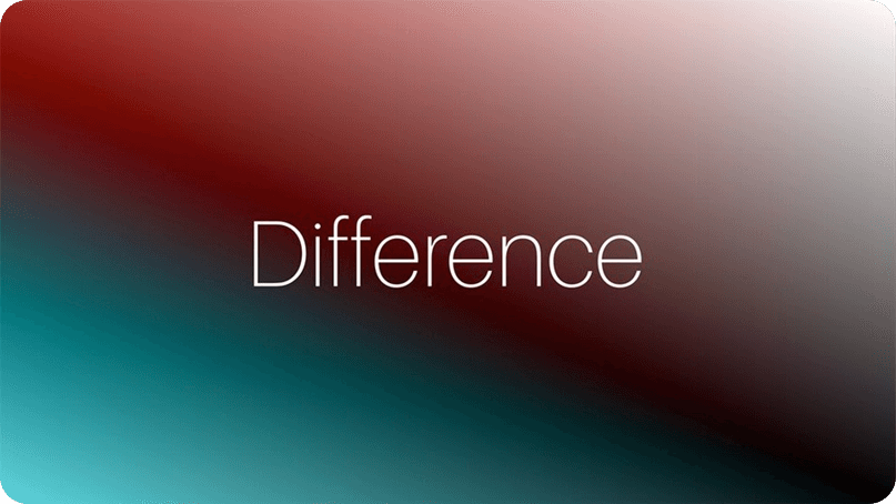 Разница вычитает нижний слой из верхнего или наоборот, чтобы всегда получать неотрицательное значение. Смешивание с черным не дает изменений, так как значения для всех цветов равны 0. ( RGB значение для черного (0,0,0).) Смешивание с белым инвертирует изображение.