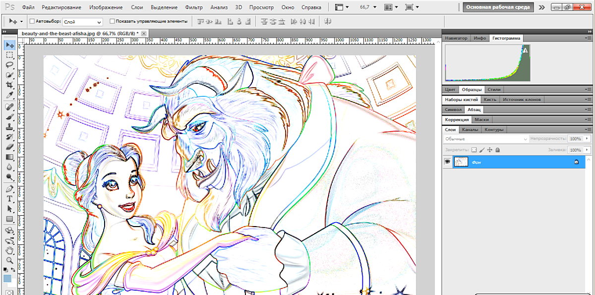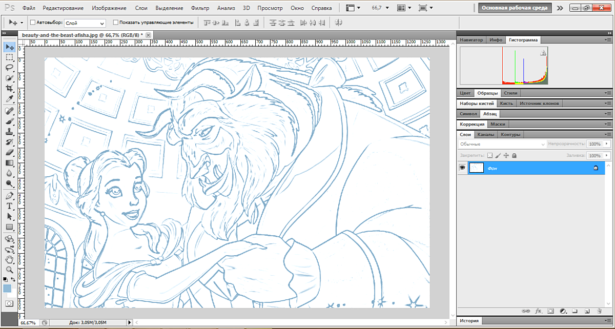 Обратите внимание, что в панели слоёв ничего не изменилось — как был один фоновый слой до рисования контура, так он один и остался после рисования. Причина этого заключена в том, что чистые контура не зависят от слоев