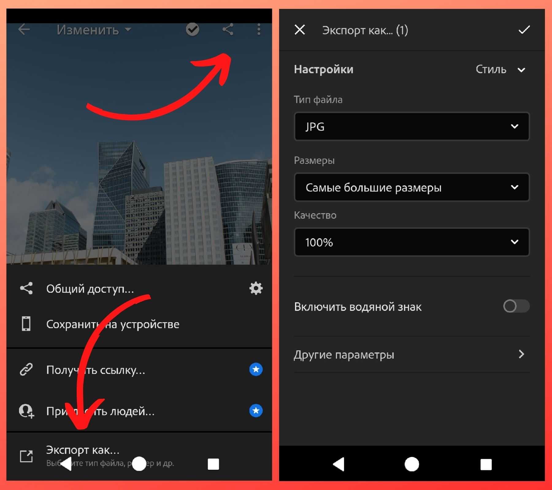 Как сохранить в Лайтрум на телефоне