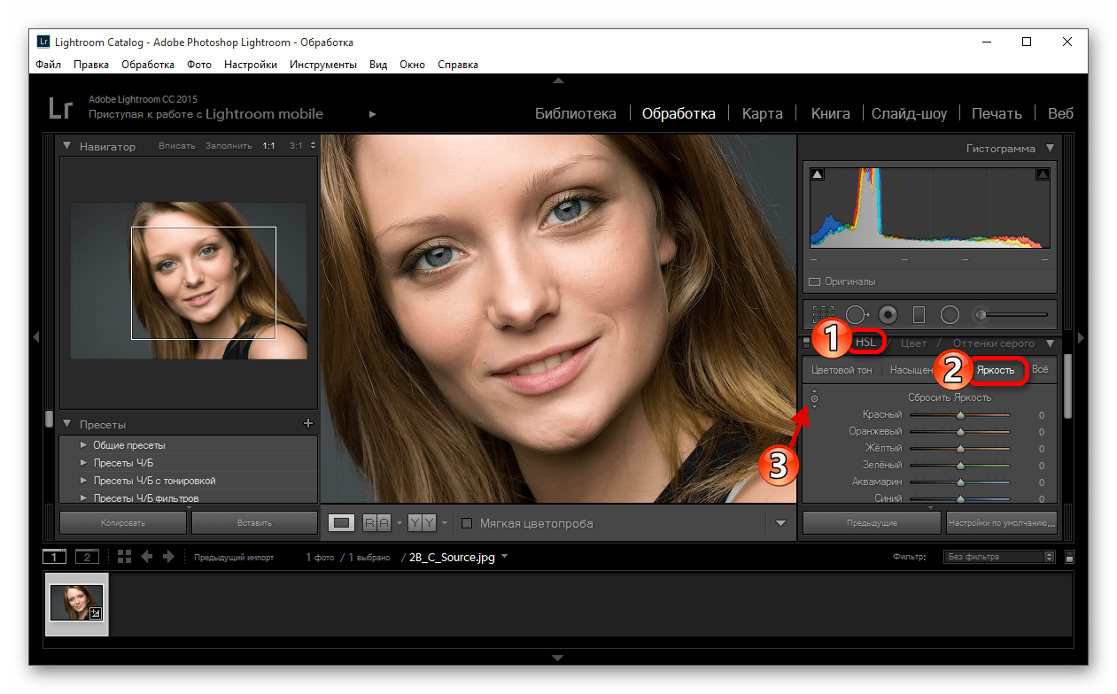 Теперь для коррекции цвета лица и придания ему «натуральности» перейдите по пути «HSL»