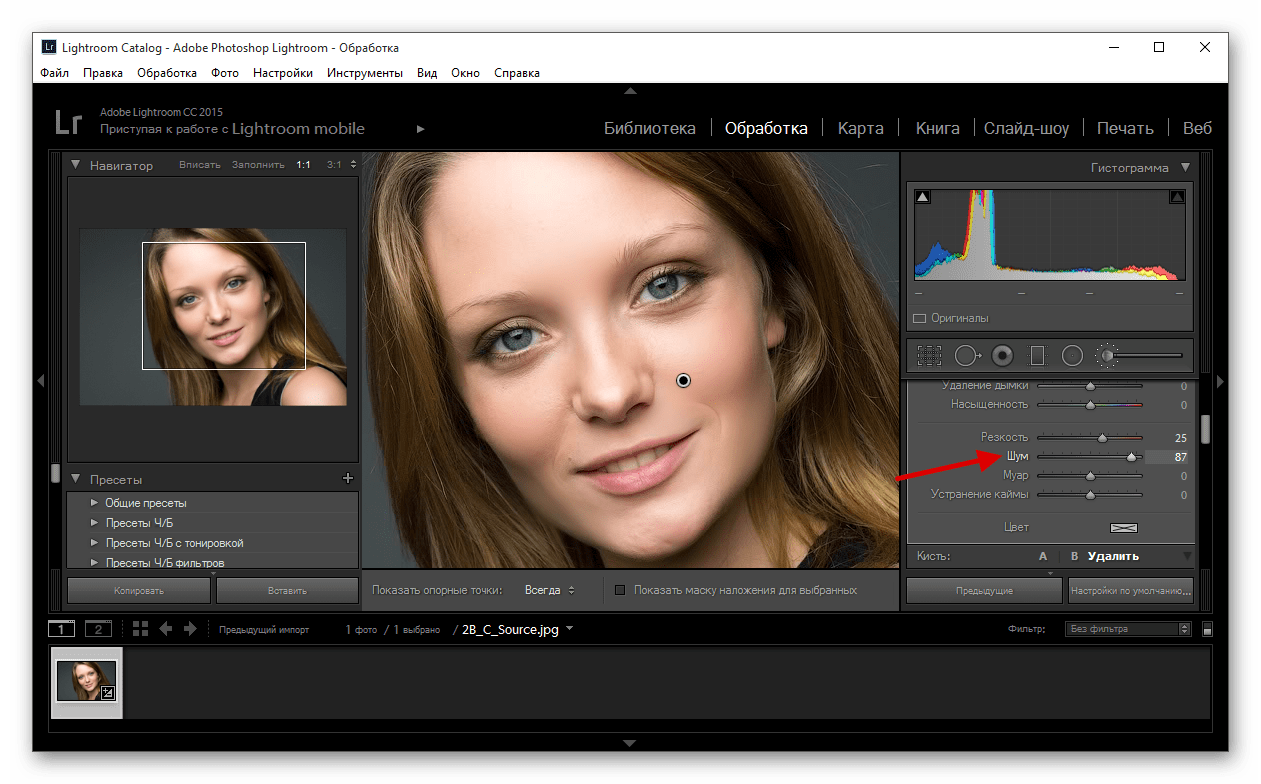 Также можно попробовать уменьшить параметр шума для сглаживания. Но эта настройка применяется ко всему снимку, поэтому будьте внимательны, чтобы не испортить изображение.